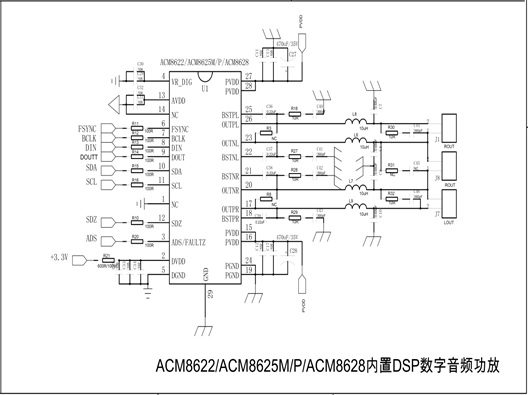 2.ACM8622/ACM8625M/P/ACM8628數(shù)字功放部分原理圖
