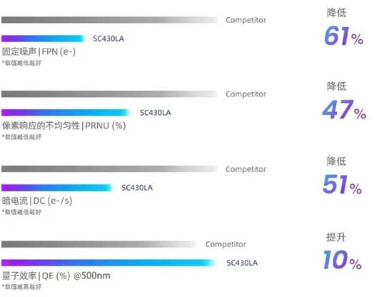 另一方面,憑借思特威創(chuàng)研的超低噪聲外圍讀取電路技術(shù)及升級的色彩工藝,SC430LA可實現(xiàn)出色的噪聲控制和色彩呈現(xiàn)效果。其固定噪聲(FPN)與像素響應(yīng)的不均勻性(PRNU)分別可降至0.28e-與0.53%,相比業(yè)內(nèi)同類產(chǎn)品,暗電流大幅降低51%,顯著提升產(chǎn)品捕獲到的圖像質(zhì)量,呈現(xiàn)更高的顏色精準(zhǔn)度和更豐富的圖像細(xì)節(jié),能夠充分滿足工業(yè)應(yīng)用對高精度傳感器的要求。