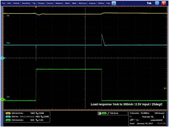 01由于有限的控制回路速度,負(fù)載電流的快速變化會導(dǎo)致輸出電壓的變化。有時(shí)因?yàn)闀r(shí)間延遲,內(nèi)部調(diào)節(jié)回路無法對電流的快速變化作出反應(yīng),就會導(dǎo)致通常約為幾十毫伏的下沖/過沖。