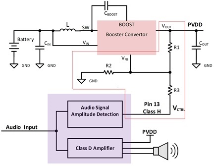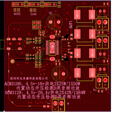 動態(tài)調(diào)整升壓CLASS H功能、25W雙聲道/50W單聲道D類音頻功放IC |