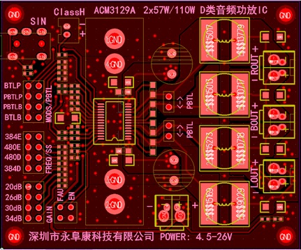 I2S數(shù)字輸入33W立體聲D類音頻功放芯片、內(nèi)置DSP小音量低頻增強等算法 |