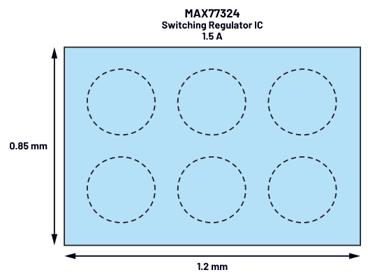 ADI公司的LTC33xx平臺由開關(guān)模式降壓型電壓轉(zhuǎn)換器組成,該轉(zhuǎn)換器以高達5 MHz的高開關(guān)頻率進行轉(zhuǎn)換。通過該平臺提供的產(chǎn)品專為各種應(yīng)用而設(shè)計。LTC3315A 專為空間受限的應(yīng)用而優(yōu)化。它是一款具有兩個通道的雙通道轉(zhuǎn)換器,每個通道可在尺寸僅為 1.64 mm × 1.64 mm 的晶圓級芯片級封裝 (WLCSP) 中提供 2 A 輸出電流。MAX77324也值得注意。這款單通道降壓型開關(guān)穩(wěn)壓器的輸出電流為 1.5 A,外殼尺寸為 1.22 mm × 0.85 mm。圖3所示為MAX77324封裝尺寸。
