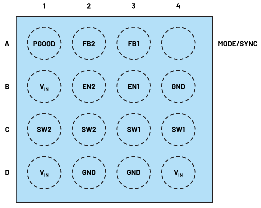 圖4.尺寸為 1.64 mm × 1.64 mm 的雙降壓穩(wěn)壓器 IC 的封裝外形。