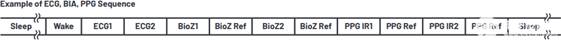 圖 3b 顯示了一個(gè)操作序列的示例。上電后,進(jìn)行復(fù)位操作,芯片進(jìn)入休眠模式。喚醒芯片后,您可以依次對(duì)兩個(gè)ECG信號(hào)(例如,LEAD I和LEAD II)進(jìn)行采樣,然后進(jìn)行光學(xué)測(cè)量以執(zhí)行SpO2讀數(shù)和阻抗測(cè)量以測(cè)量皮膚電導(dǎo)率(EDA/壓力)。下一節(jié)將解釋實(shí)現(xiàn)這些測(cè)量中的每一個(gè)的過(guò)程。