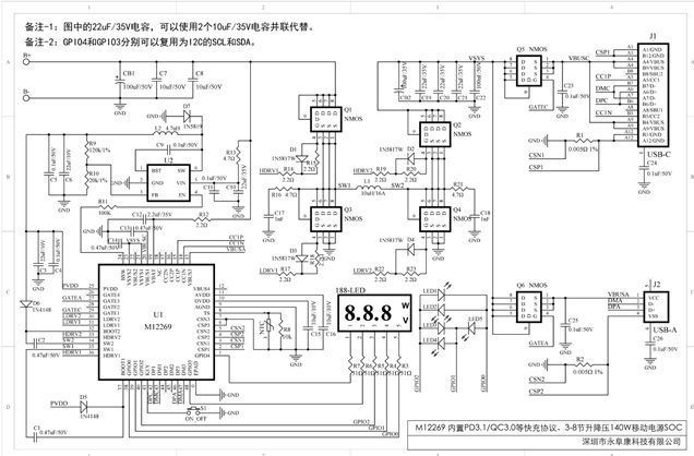 M12269 支持PD3.1等快充協(xié)議、140W升降壓3-8節(jié)多串鋰電充放電移動電源管理IC方案