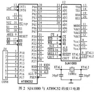 3.1 SJAl000與AT89C52的接口設(shè)計(jì)