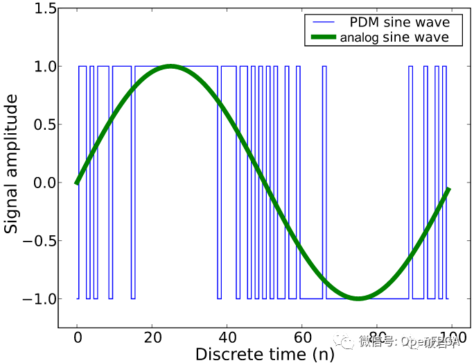 PDM就是經(jīng)過了以上的∑-Δ調(diào)制而得到的數(shù)字信號(hào),如果把這一連串?dāng)?shù)字信號(hào)放在同一標(biāo)尺上和原始信號(hào)相比,會(huì)發(fā)現(xiàn)數(shù)字"0"和"1"隨著信號(hào)電頻的增減成都而密度產(chǎn)生相應(yīng)變化,所以稱為是脈沖密度調(diào)制**(Pulse Density Modulation)。