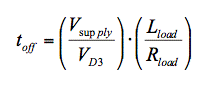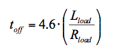 在二極管續(xù)流電路中,負載兩端的電壓僅增加二極管正向傳導(dǎo)電壓,因此電流衰減為e -t 的函數(shù)。如果關(guān)斷 電流定義為飽和電流的 1%,典型續(xù)流二極管的關(guān)斷時間可由下式計算:
