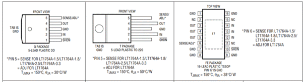 實(shí)際輸出能力與壓差和電流有關(guān),手冊中給表示的理想狀態(tài)。實(shí)際的輸出能力和壓差及電流相關(guān)。大的輸出電流值散熱問題越嚴(yán)重,如果是大電流的應(yīng)用盡量使用開關(guān)電源。