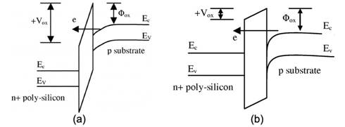 另一方面,當施加負柵極電壓時,來自 n+ 多晶硅柵極的電子隧道進入或穿過 SiO 2層,從而產(chǎn)生柵極電流,如圖 2(c) 所示。