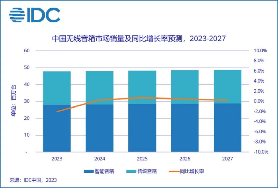 IDC預(yù)計,2023年中國無線音箱市場銷量將同比下降2%,降幅較去年有明顯收窄,然而消費(fèi)環(huán)境及前期市場滲透率快速提升導(dǎo)致今年中國音箱市場銷售仍將面臨一定壓力。挑戰(zhàn)之下,經(jīng)濟(jì)有序恢復(fù)、戶外需求回暖及人機(jī)交互優(yōu)化也為市場發(fā)展帶來了機(jī)遇。