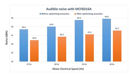 例如,TI 的 MCF8316A BLDC 集成控制柵極驅動器(一款無傳感器 FOC 電機驅動器)采用此內置功能來優(yōu)化多種電機頻率下的聲學性能,如圖 6 所示。