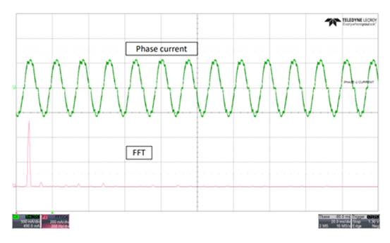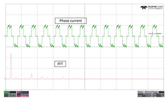 圖 3:相電流波形與快速傅里葉變換 (FFT) 非連續(xù) PWM 之間的關系