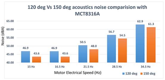 為了應對這些挑戰(zhàn)并提高聲學性能,工程師可以構建能夠在 120 度梯形換向和 150 度梯形換向之間動態(tài)切換的電機驅動器系統(tǒng)。這種動態(tài)調制可以改善 BLDC 電機控制期間的整體聲學性能。