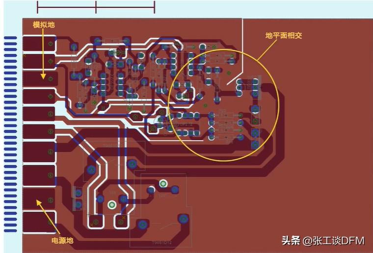 承載模擬信號的軌道應(yīng)遠(yuǎn)離高速或開關(guān)信號,并應(yīng)始終受到接地信號的保護(hù)。低通濾波器可用于避免模擬軌道周圍的高頻噪聲。此外,重要的是模擬和數(shù)字子系統(tǒng)的地平面不要共用 。