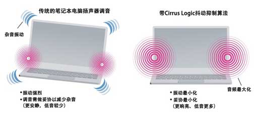 圖 5:Cirrus Logic 算法可減少超薄筆記本電腦的雜音并最大限度地減少振動(dòng),同時(shí)確保響亮、優(yōu)質(zhì)的音頻。