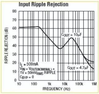 任何一款LDO都有一項指標(biāo):噪音抑制比。是一條頻率-dB曲線,如右圖是凌特公司LT3024的曲線。