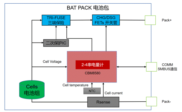 其中,CBM8580是一款基于2-4節(jié)串聯(lián)鋰離子或鋰聚合物電池組的單芯片全集成方案。該產品可為 2 節(jié)、3 節(jié)和 4 節(jié)串聯(lián)鋰電池組提供電量監(jiān)測、保護和認證等功能,利用其集成的高性能模擬外設,測量鋰電池的可用容量、電壓、電流、溫度和其他關鍵參數(shù),保留準確的數(shù)據(jù)記錄,并通過通訊接口將這些信息報告給系統(tǒng)主機控制器。