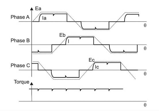 梯形控制的工作原理是在任何給定時(shí)間斷言兩個(gè)相位。因此,如上所示,在任何相位的過零期間都不會(huì)產(chǎn)生扭矩。