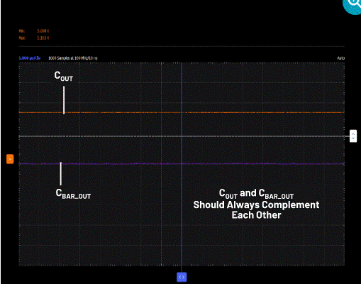 觀察示波器界面上A和B輸入信號相應的C輸出和CBAR輸出。