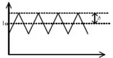 上圖是開關電源電感L內(nèi)的電流波形,其紋波電流△I可由下式算出: