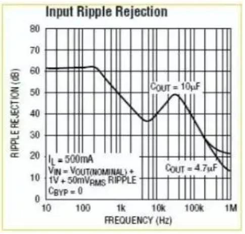 任何一款LDO都有一項指標:噪音抑制比。是一條頻率-dB曲線,如下圖是凌特公司LT3024的曲線。