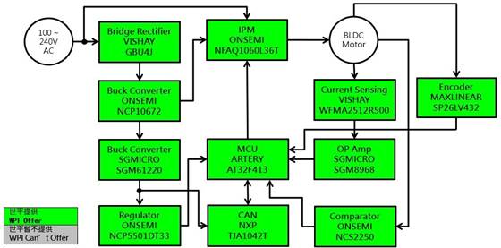 圖示2-大聯(lián)大世平基于Artery產(chǎn)品的高壓直流無刷電機(jī)驅(qū)動(dòng)方案的場(chǎng)景應(yīng)用圖