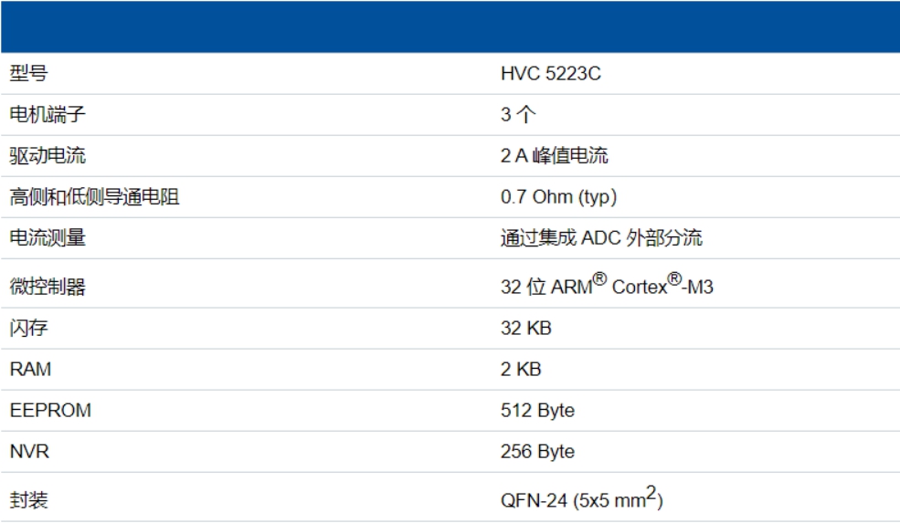 TDK 株式會(huì)社 正在擴(kuò)大其 Micronas 嵌入式電機(jī)控制器系列 HVC,并推出 HVC 5223C。這是一款經(jīng)認(rèn)證 的汽車(chē)級(jí)一級(jí)產(chǎn)品,全集成電機(jī)控制器,可驅(qū)動(dòng)峰值相電流為 2 A 的小型有刷(BDC)或無(wú)刷(BLDC)電機(jī)。HVC 5223C 采用緊湊型 5x5 平方毫米 24 針 QFN 封裝,在功能上與 HVC 5222C 引腳兼容,HVC 5222C具備1A峰值電流能力。樣品現(xiàn)可供客戶(hù)評(píng)估。