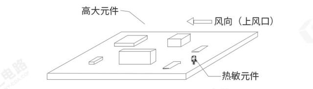 9)小元件(電阻容及Chip類器件)周圍不能被高器件包圍,要有足夠的空間(左右至少3mm),方便拆卸,如圖1-9及圖1-10所示,高矮器件布局原則,高器件布局在低矮器件的后面,并且沿風(fēng)阻最小的方向布局,防止風(fēng)道受阻。
