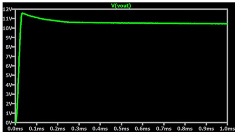 我們首先運行一個占空比為 50%、負(fù)載電阻為 1 kΩ 的仿真。圖 2 是輸出電壓隨時間變化的圖。請注意,輸出電壓需要一些時間才能達(dá)到其穩(wěn)態(tài)值。