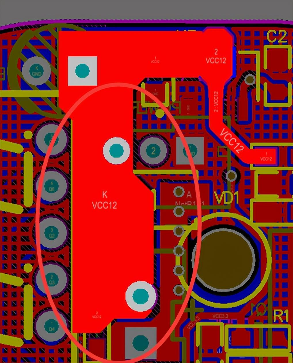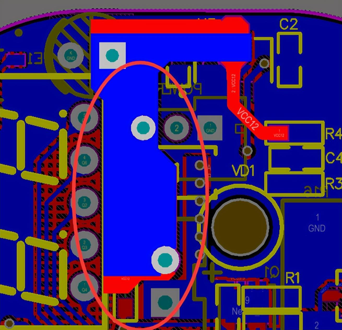 由于我懷疑這個電路,然后就帶著電路板請教了公司的大佬,問了一下為啥會出現(xiàn)這種現(xiàn)象,他看了一下電路板說“這個電路有些問題。
