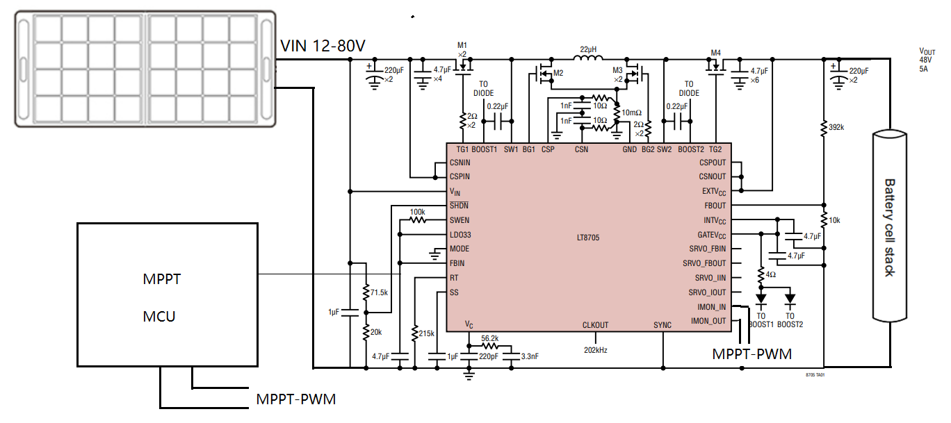 今天我們要講到的是,ADI推出的LT8705降壓 - 升壓控制器 提供了一種極好的方法來解決工作電壓高達(dá)80V的系統(tǒng)中的可變性問題,因?yàn)樗梢越邮?.8至80V的輸入電壓,并在輸出端提供1.3V至80V的電壓,可以解決當(dāng)下流行的4塊光伏板串聯(lián)輸入充電(電壓高達(dá)72V)與12V車載充電的寬范圍輸入轉(zhuǎn)換的問題,這使得設(shè)計(jì)能夠與眾多太陽能電池板設(shè)備連接,通過運(yùn)行一個程序來實(shí)現(xiàn)最大功率點(diǎn)跟蹤(MPPT) 和最大限度地利用太陽能電池轉(zhuǎn)換的能量來進(jìn)一步改進(jìn)系統(tǒng)。