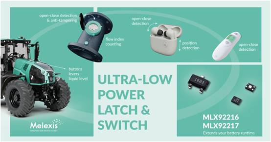 Melexis發(fā)布的微瓦級(jí)開(kāi)關(guān)MLX92216和MLX92217直接滿足了這一需求。這兩款三線霍爾開(kāi)關(guān)在應(yīng)用的整個(gè)生命周期內(nèi)都具備業(yè)界領(lǐng)先的精度、穩(wěn)定性和可靠性。并且提供單極、全極和鎖存器型號(hào),適用于如蓋子開(kāi)/關(guān)檢測(cè)、可穿戴設(shè)備、工業(yè)機(jī)器、家用電器、平板電腦外殼、閥門(mén)、能源和流量計(jì)等諸多應(yīng)用,同時(shí)也可以取代傳統(tǒng)的接近開(kāi)關(guān)和干簧管開(kāi)關(guān)。