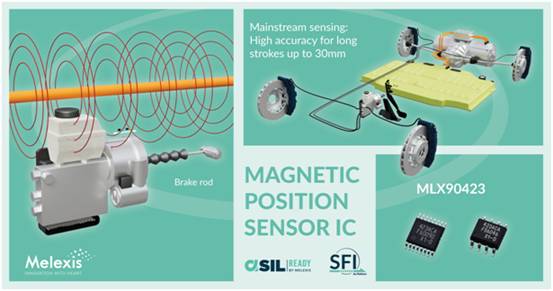 全球微電子工程公司Melexis今日宣布,Melexis推出新款磁位置傳感器芯片MLX90423,為廣受歡迎的MLX9042x系列3D再添新成員。這款新器件具有更高的長行程精度(高達30mm)、更強的抗雜散磁場干擾(SFI)性能且符合ISO26262(支持ASIL D系統(tǒng)集成)要求,完美的兼顧了性能與價格,非常適合制動系統(tǒng)(制動桿)等空間受限的汽車ADAS應用。