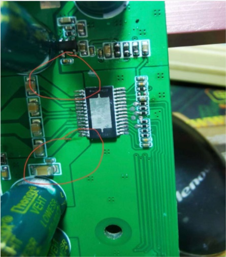 1)陶瓷貼片濾波電容擺放離芯片PVDD管腳太遠(yuǎn),導(dǎo)致功放芯片啟動(dòng)就產(chǎn)生過流保護(hù).