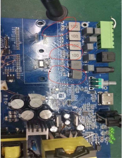 1)PCB板布局過于緊湊,輸出電感無法靠近功放輸出腳擺放,導(dǎo)致功率輸出的PWM信號(hào)走線很長,對(duì)EMI產(chǎn)生很大挑戰(zhàn).