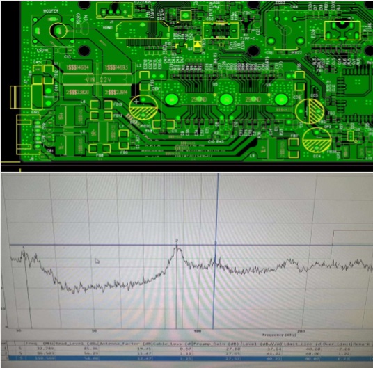 2) 雖經(jīng)過調(diào)整,增加輸出Snubber電路,以及調(diào)整PWM開關(guān)頻率,開Spread Spectrum,有所改善,還是不能最終通過EMI測試要求.