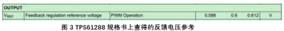 得到 TPS61288 的 feedback 參考電壓為 0.6V。