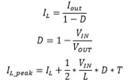 其中, 𝐼是boost平均電感電流, 𝐼_是電感峰值電流, 𝑉為boost輸入電壓, 𝐼為boost輸出電流,𝐷為占空比,T為開(kāi)關(guān)周期。