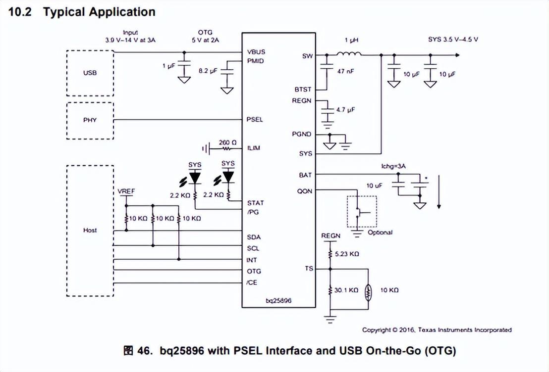 BQ25896輸入和輸出的VBUS管腳是同一個(gè),它通過(guò)讀ID信號(hào)來(lái)判斷是電源輸入還是輸出。