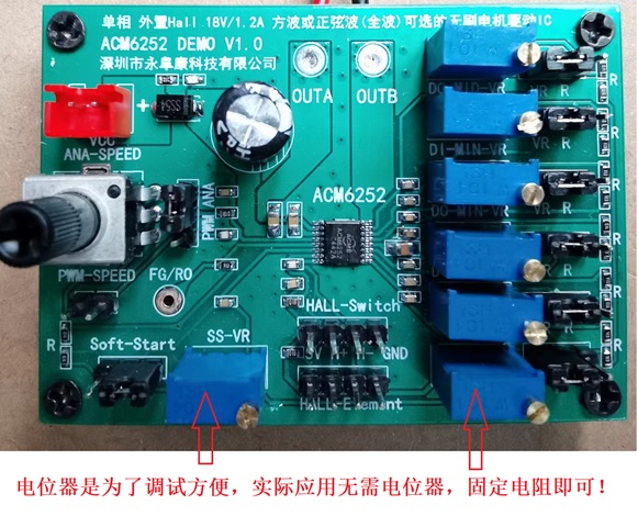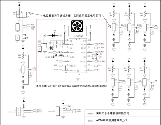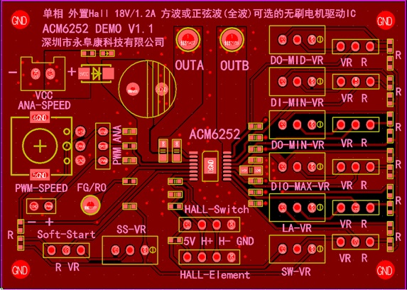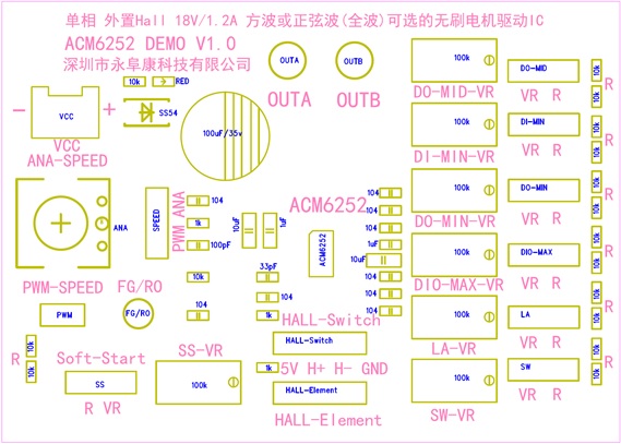 主流的無刷直流電機的控制方式目前主要有三種:方波控制(也稱為梯形波控制、120°控制、6步換向控制)和正弦波控制、FOC(又稱為矢量變頻、磁場矢量定向控制)。深圳市永阜康科技有限公司現(xiàn)在大力推廣一顆單相正弦波/方波直流無刷電機驅(qū)動IC-ACM6252. 工作電壓3.1V-18V、工作電流1.2A, 可覆蓋大多數(shù)中小功率(<1A)的風機、泵機類應(yīng)用。