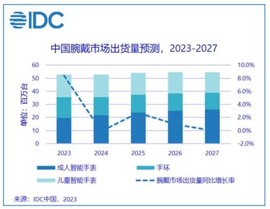 IDC預(yù)計(jì),2024年,成人智能手表將在產(chǎn)品差異化布局的推動(dòng)下增長(zhǎng)11%;兒童手表市場(chǎng)將基本保持穩(wěn)定;手環(huán)在需求已明顯釋放的情況下將有明顯收縮,降幅超過10%。成人智能手表仍然是腕戴市場(chǎng)的重要推動(dòng)部分,也將在應(yīng)用場(chǎng)景擴(kuò)展、產(chǎn)品差異化和技術(shù)創(chuàng)新的加持下保持持續(xù)增長(zhǎng)。