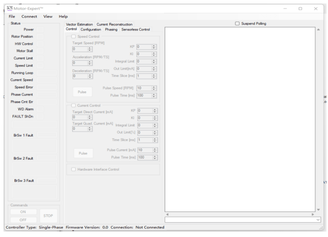 Motor-Expert 2.0是PI推出的一款嵌入C語(yǔ)言應(yīng)用程序、庫(kù)及控制GUI的軟件,使用BridgeSwitch™無(wú)刷直流(BLDC)電機(jī)驅(qū)動(dòng)器IC的設(shè)計(jì)人員,借助該軟件可對(duì)三相電機(jī)的運(yùn)行性能進(jìn)行精確的控制和調(diào)整。其與電機(jī)控制庫(kù)的通信協(xié)議是公開的,用戶在產(chǎn)品開發(fā)過(guò)程中可使用該上位機(jī)進(jìn)行調(diào)試。根據(jù)說(shuō)明文檔整理及軟件界面顯示,該上位機(jī)具備如下功能:電機(jī)狀態(tài)顯示、電機(jī)參數(shù)設(shè)置、電機(jī)控制指令設(shè)置、數(shù)據(jù)波形顯示(同一時(shí)刻最多四個(gè)信號(hào))、控制臺(tái)等。