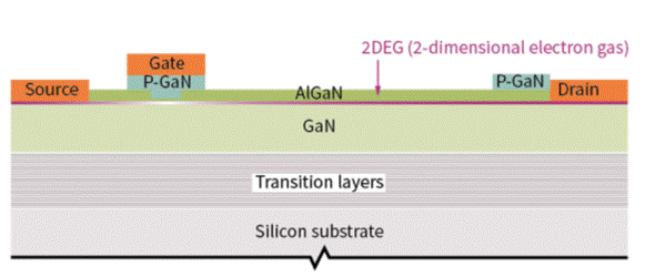 圖2:GaN HEMT晶體管的結(jié)構(gòu)