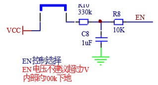 VCC 為HT7179 PIN15 腳,為芯片LDO輸出。只要VIN有電壓,VCC就會(huì)產(chǎn)生一個(gè)電壓。 這樣在VIN上電啟動(dòng)的時(shí)候,VCC跟隨VIN上升。EN通過一組RC,使得EN的上升緩于VIN,這樣形成一個(gè)時(shí)間差,使得VIN上電可以充滿VOUT再使得HT7179工作。