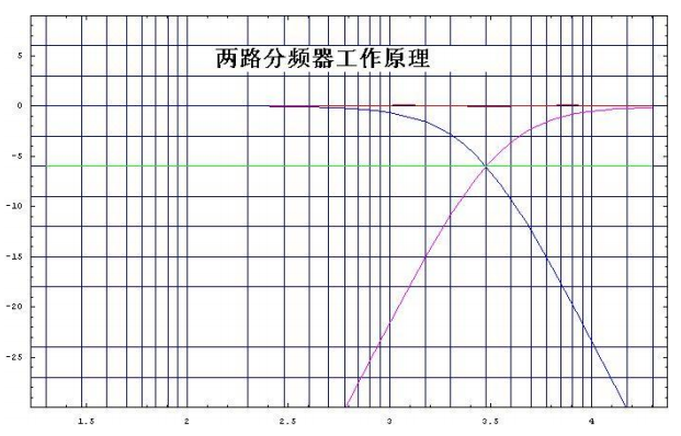 分頻器的主要功能就是將在不同頻域工作的聲源重疊結(jié)合起來。如圖是兩路分頻器的情況,實際上是有高通網(wǎng)絡(luò)和低通網(wǎng)絡(luò)組成,兩部份通過適當(dāng)?shù)南辔魂P(guān)系組合起來,并得到平坦的幅頻響應(yīng),相位關(guān)系決定了高、低通網(wǎng)絡(luò)在結(jié)合部的衰減特性,當(dāng)在結(jié)合部相差為90度的奇數(shù)倍時(奇數(shù)階的分頻網(wǎng)絡(luò)),各部份聲源可以認為完全不相關(guān),此時結(jié)合部的衰減值為3dB,也就是通常所說的3dB 交叉; 當(dāng)在結(jié)合部相差為90度的偶數(shù)倍時(偶數(shù)階的分頻網(wǎng)絡(luò)),各部份聲源可以認為完全相關(guān),此時結(jié)合部的衰減值為 6dB,就是通常所說的6dB交叉。結(jié)合點對應(yīng)的頻率稱為分頻點,分頻點的選擇在揚聲器系統(tǒng)中是一個關(guān)鍵的設(shè)計決策,它直接影響到音質(zhì)和聽感。