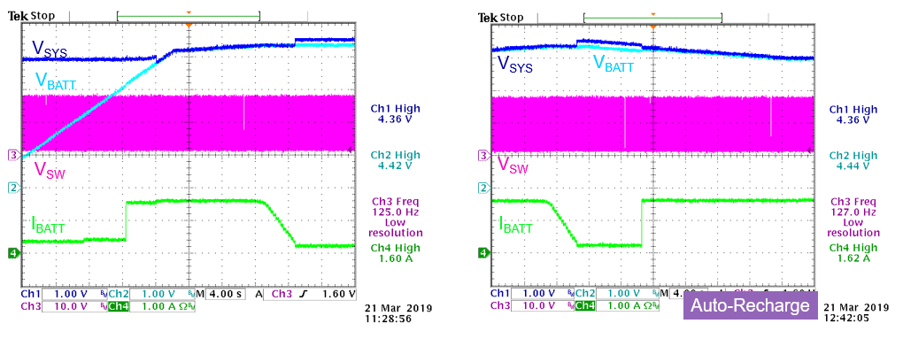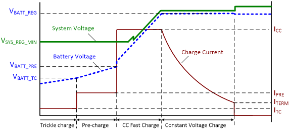 當電池電壓比較低的時候,會把系統(tǒng)調節(jié)到最低的工作點,然后使用Battery FET給電池進行涓流/預充電,當電池電壓高到一個閾值時,會把電池和系統(tǒng)接在一起,進行快速充電,電池充滿后,系統(tǒng)會再高一點點,保證壓差。