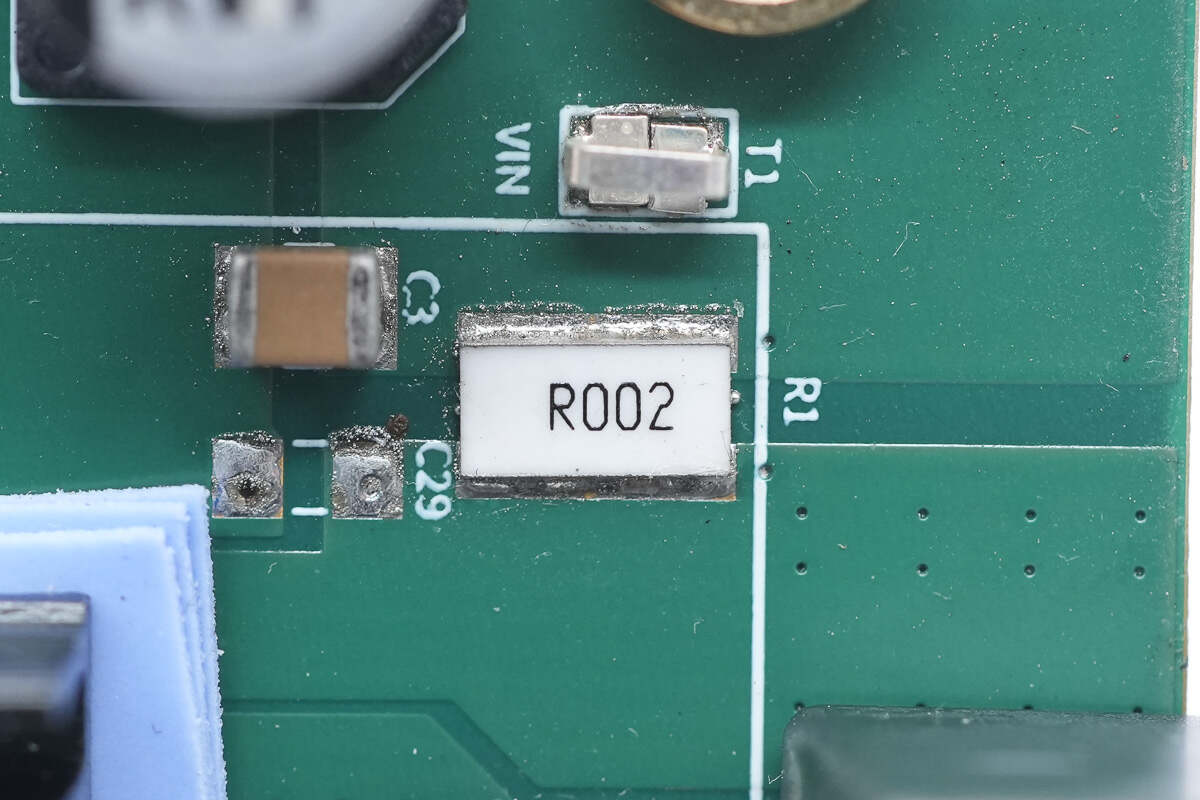 2mΩ取樣電阻采用1225封裝,用于檢測輸入和輸出電流。