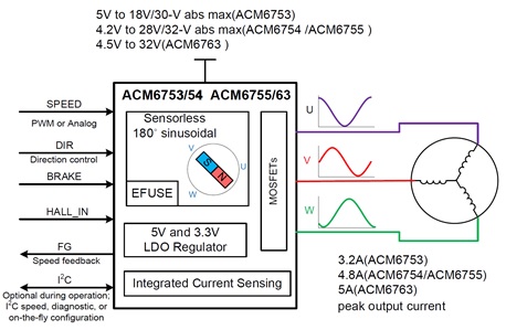 (2)正弦波控制:使用的是SVPWM波,輸出的是3相正弦波電壓,電機(jī)相電流為正弦波電流?梢哉J(rèn)為在一個(gè)電氣周期內(nèi)進(jìn)行了多次的連續(xù)變化換向,無換相電流突變。顯然,正弦波控制相比方波控制,其轉(zhuǎn)矩波動(dòng)較小,電流諧波少,控制起來感覺比較“細(xì)膩”。高集成度一直是集成電路設(shè)計(jì)行業(yè)不斷探索的目標(biāo)。就電機(jī)驅(qū)動(dòng)控制專用芯片而言,如果單顆芯片能集成更多的器件和功能,則其應(yīng)用于具體下游產(chǎn)品時(shí),可大大簡(jiǎn)化外圍電路、減少外圍器件,更好地滿足終端應(yīng)用需求,實(shí)現(xiàn)降本增效,提升整體方案的可靠性。深圳市永阜康科技有限公司致力于內(nèi)置MOS+預(yù)驅(qū)+算法、全集成三相直流無刷電機(jī)驅(qū)動(dòng)芯片的推廣,全系列產(chǎn)品系列外圍僅需幾個(gè)阻容,選型列表如下: