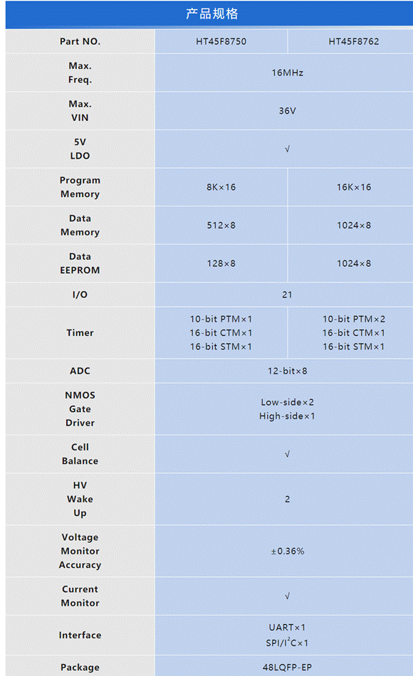 HOLTEK新推出HT45F8750/62鋰電池管理MCU